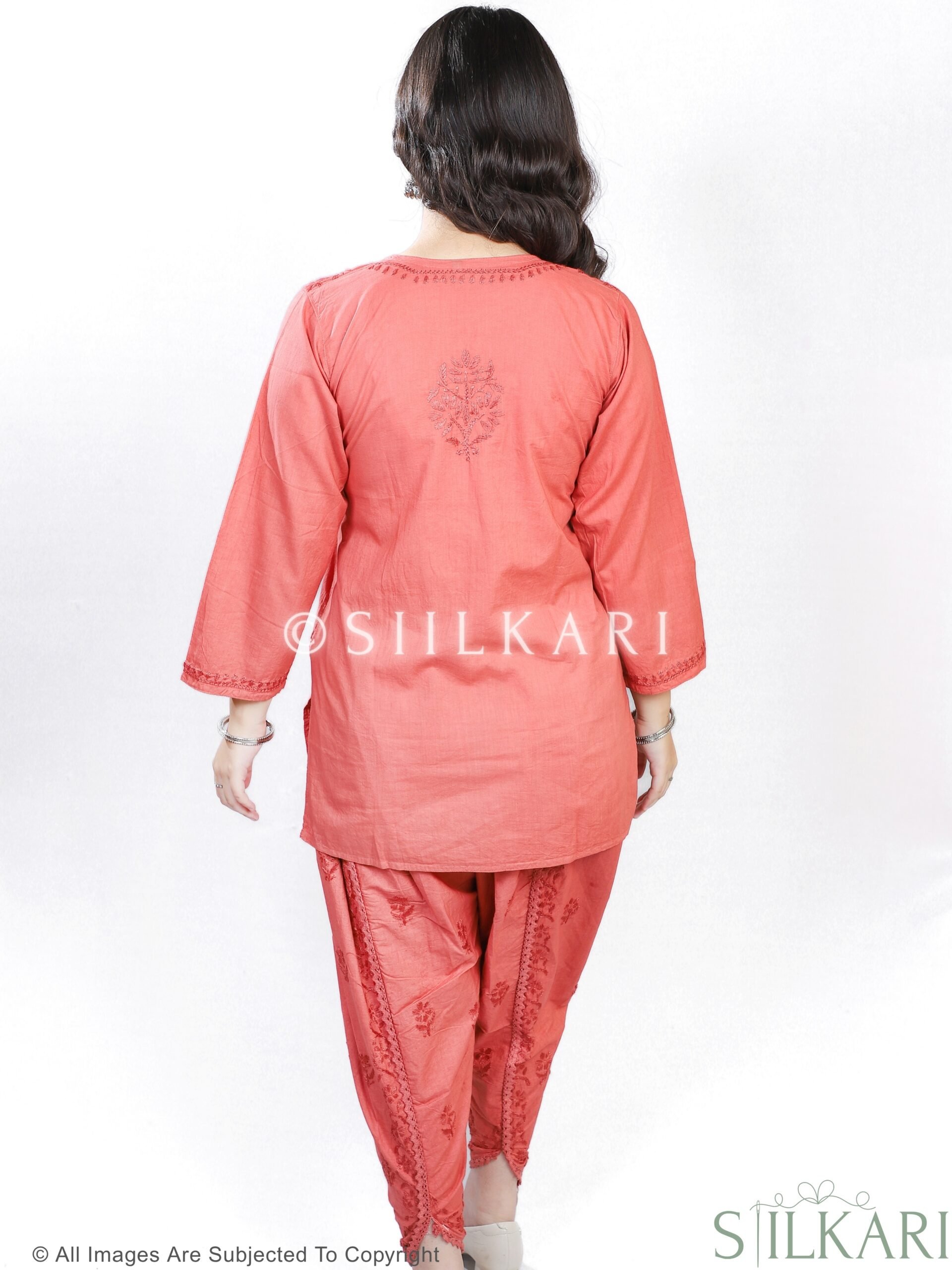 Be the first to review “Cotton Chikankari Short Kurti Peach”