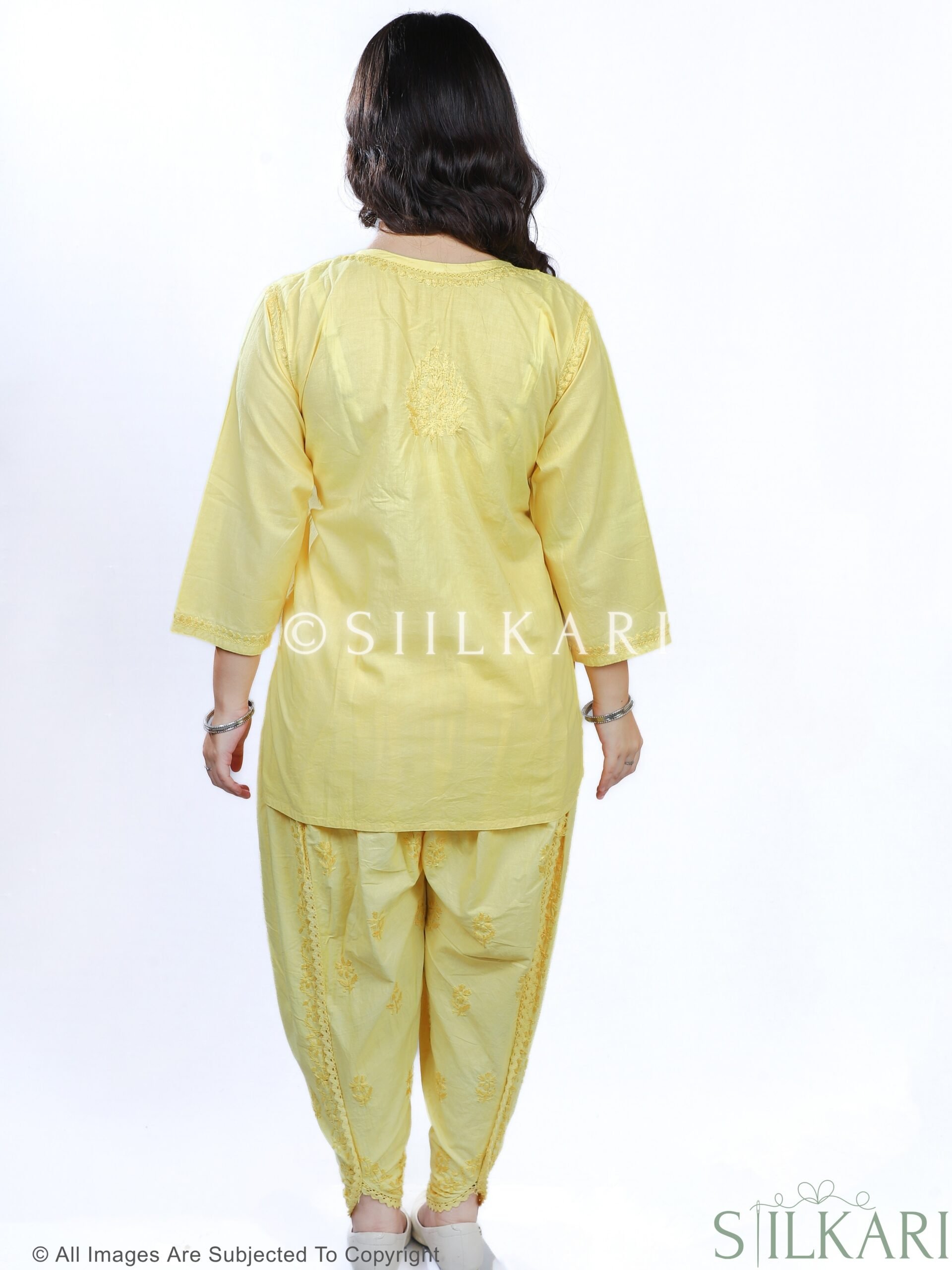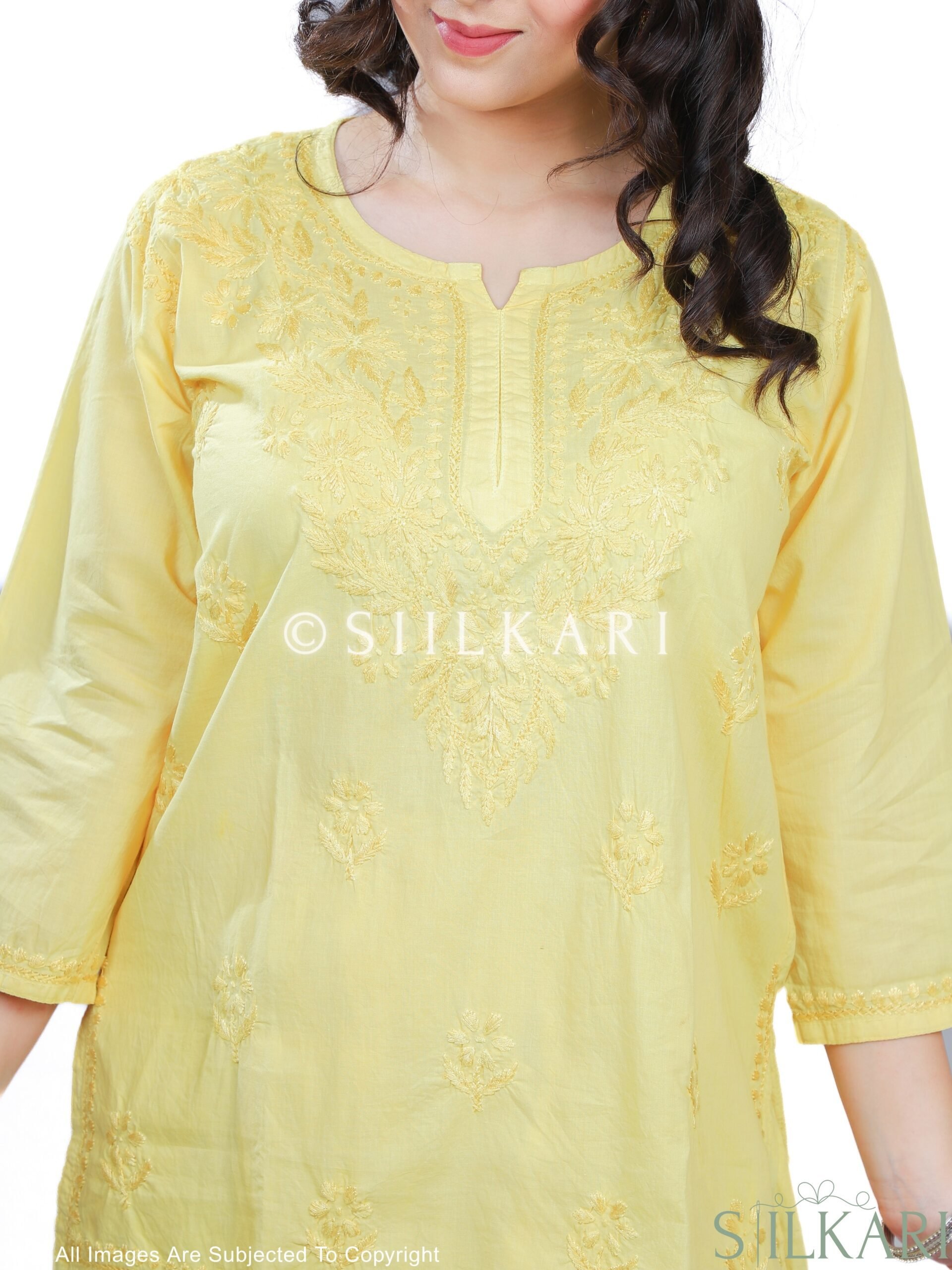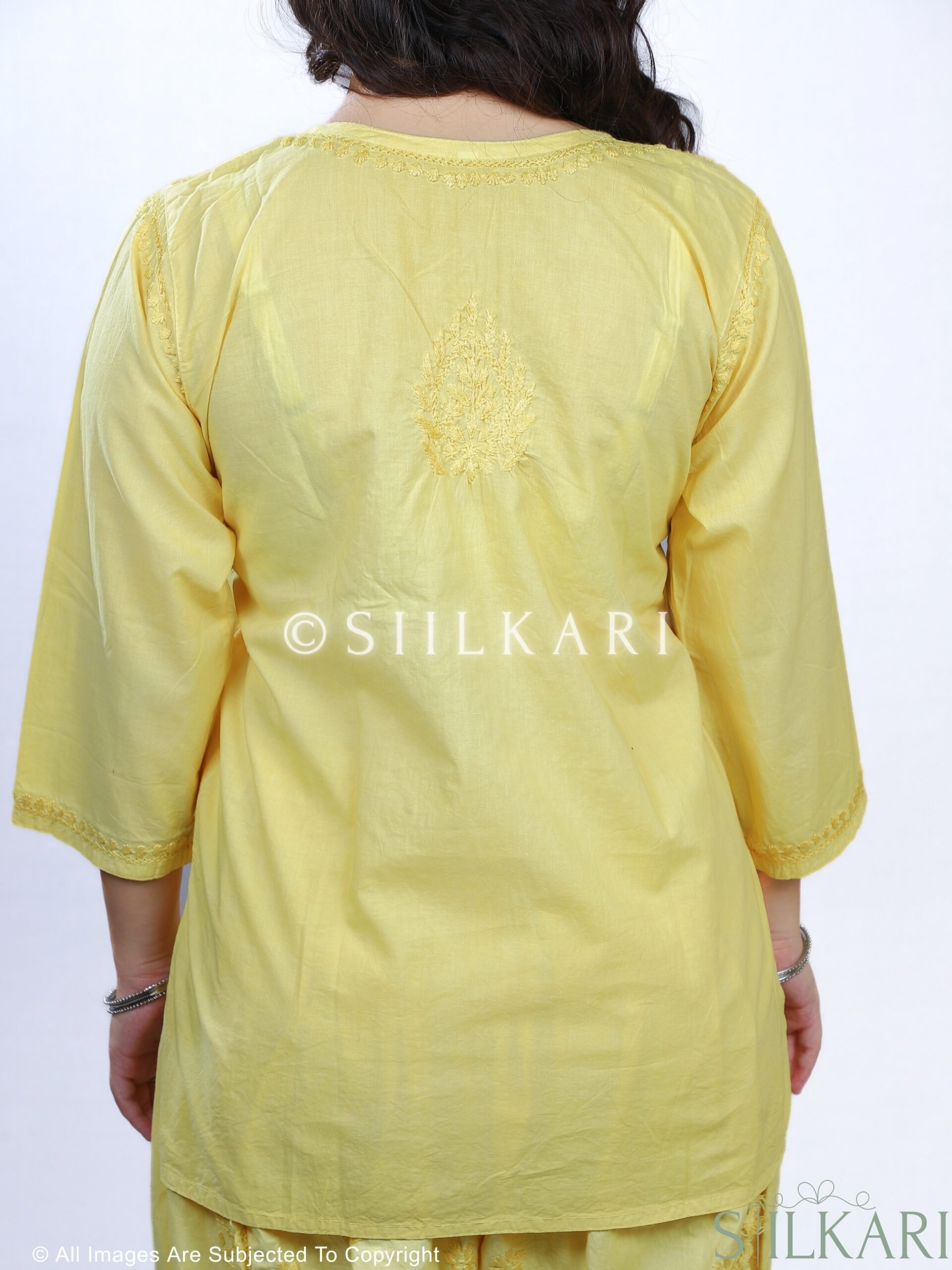 Be the first to review “Cotton Chikankari Short Kurti Yellow”