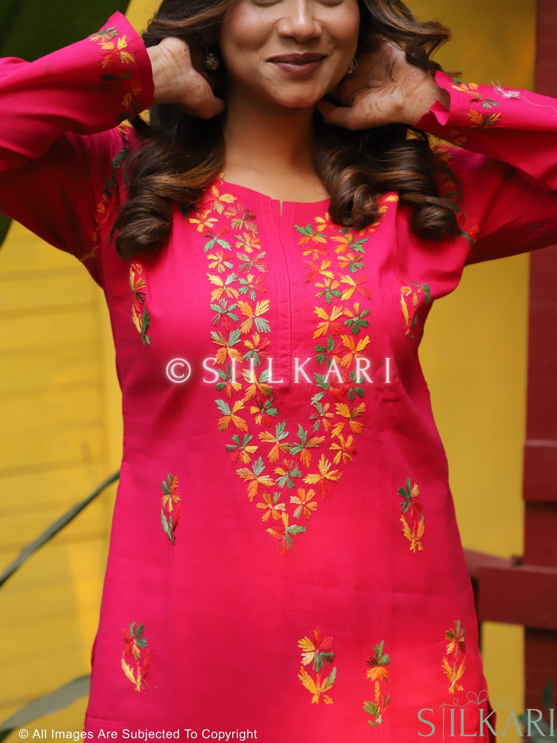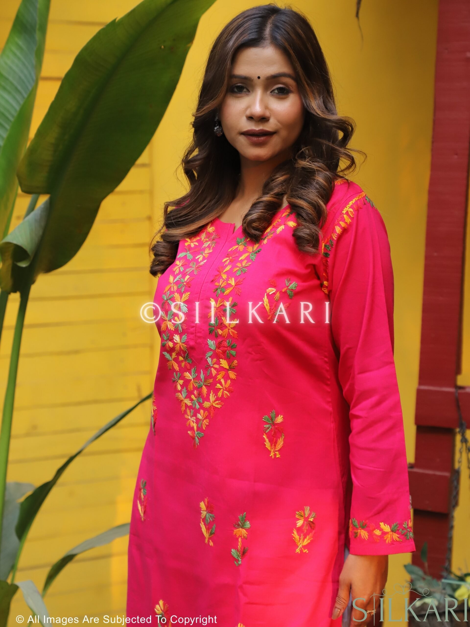 This Pure Cotton Multicolor Chikankari Kurti for women blends traditional Lucknowi hand embroidery with a modern ethnic wear appeal. Crafted from soft, breathable cotton, this kurti is perfect for daily wear, office wear, festive occasions, and summer outings. The intricate multicolor hand-embroidered Chikankari design adds a vibrant touch of elegance, while the comfortable straight-fit style makes it ideal for girls and women.