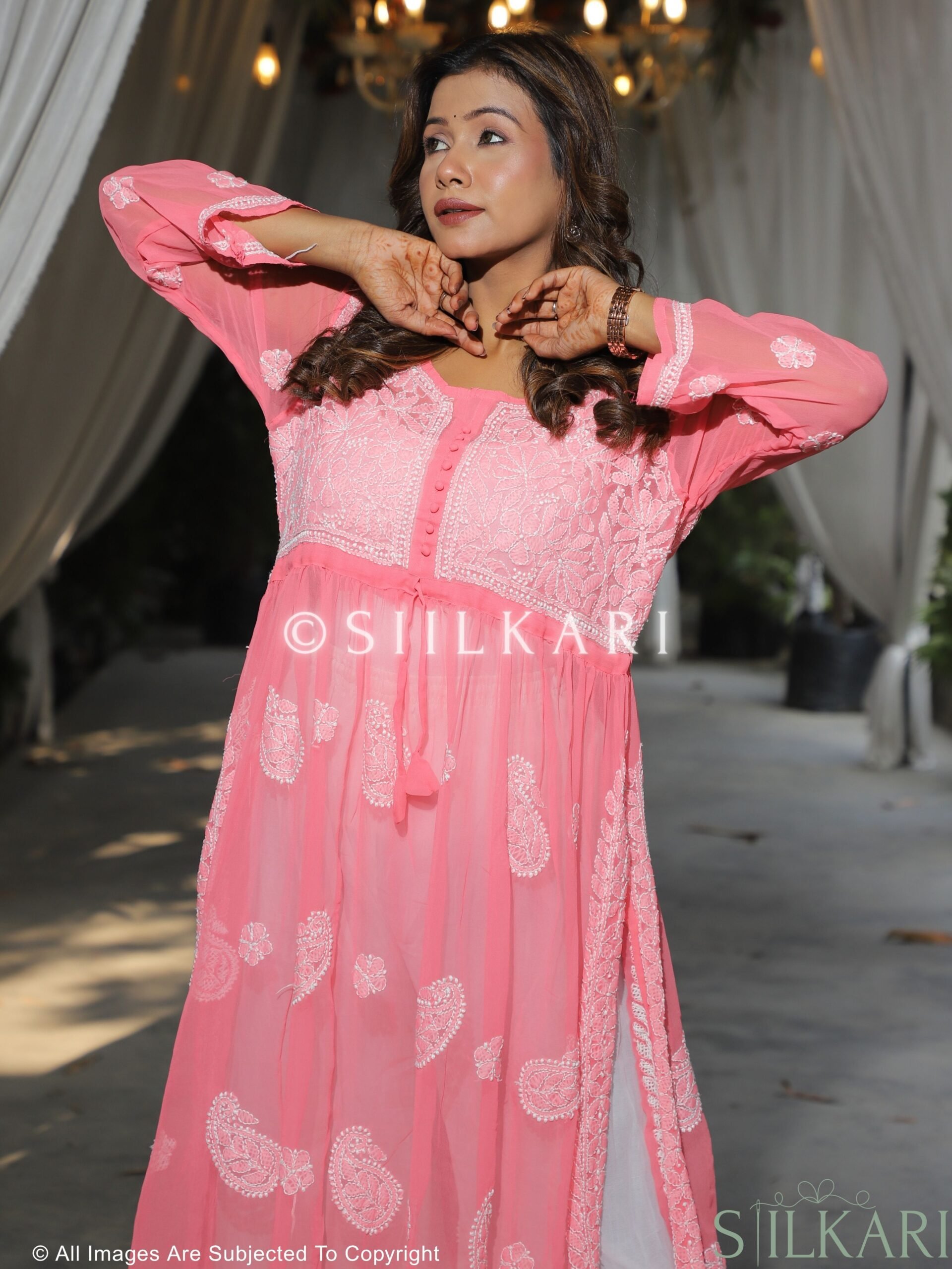 Crafted from soft and flowy georgette fabric, it features pure hand-embroidered Chikankari work done by skilled artisans from Lucknow. The intricate detailing adds sophistication, making it ideal for festive events, office wear, or casual outings.