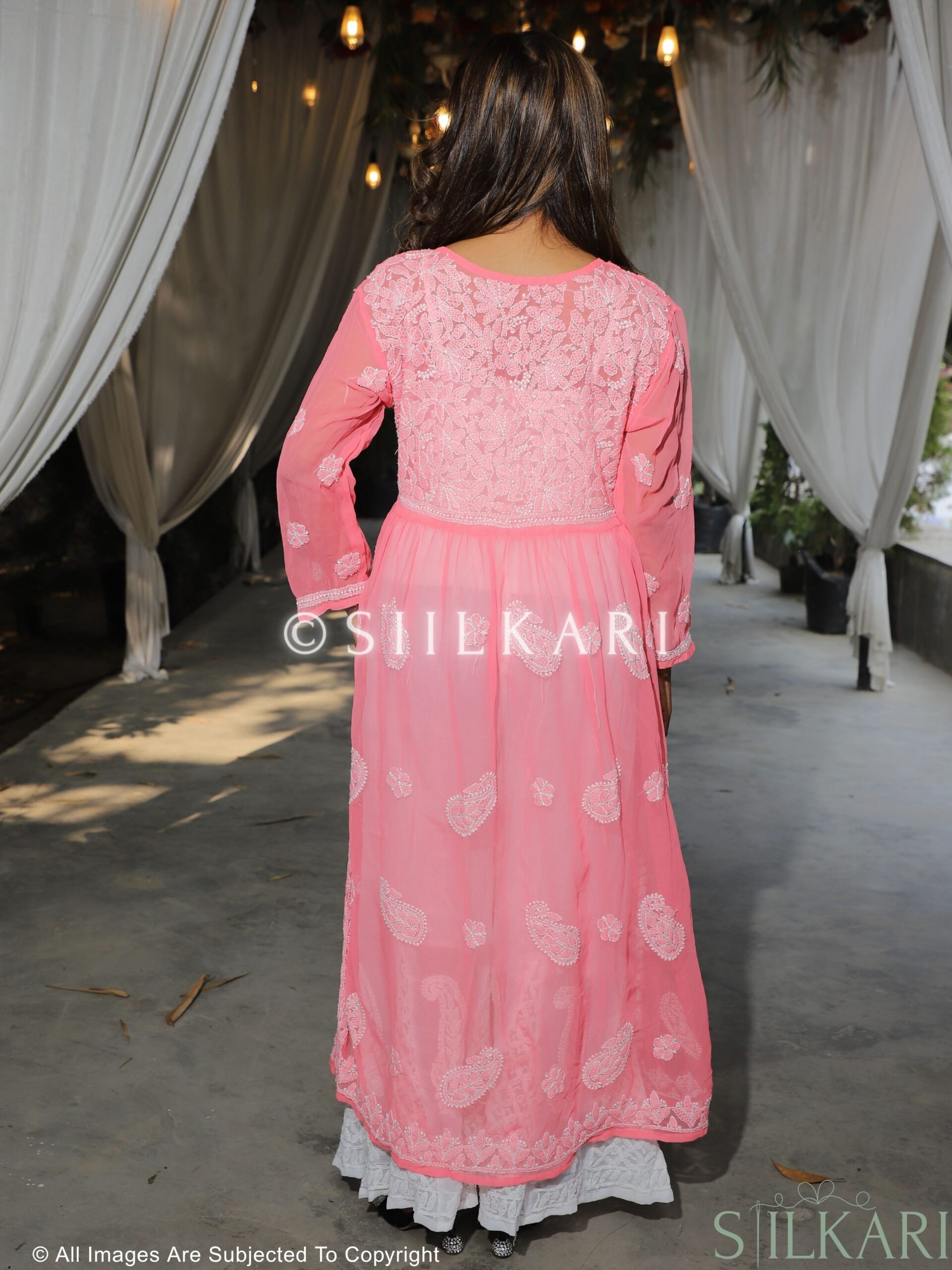 Be the first to review “Georgette Chikankari Naira Kurti Peach”