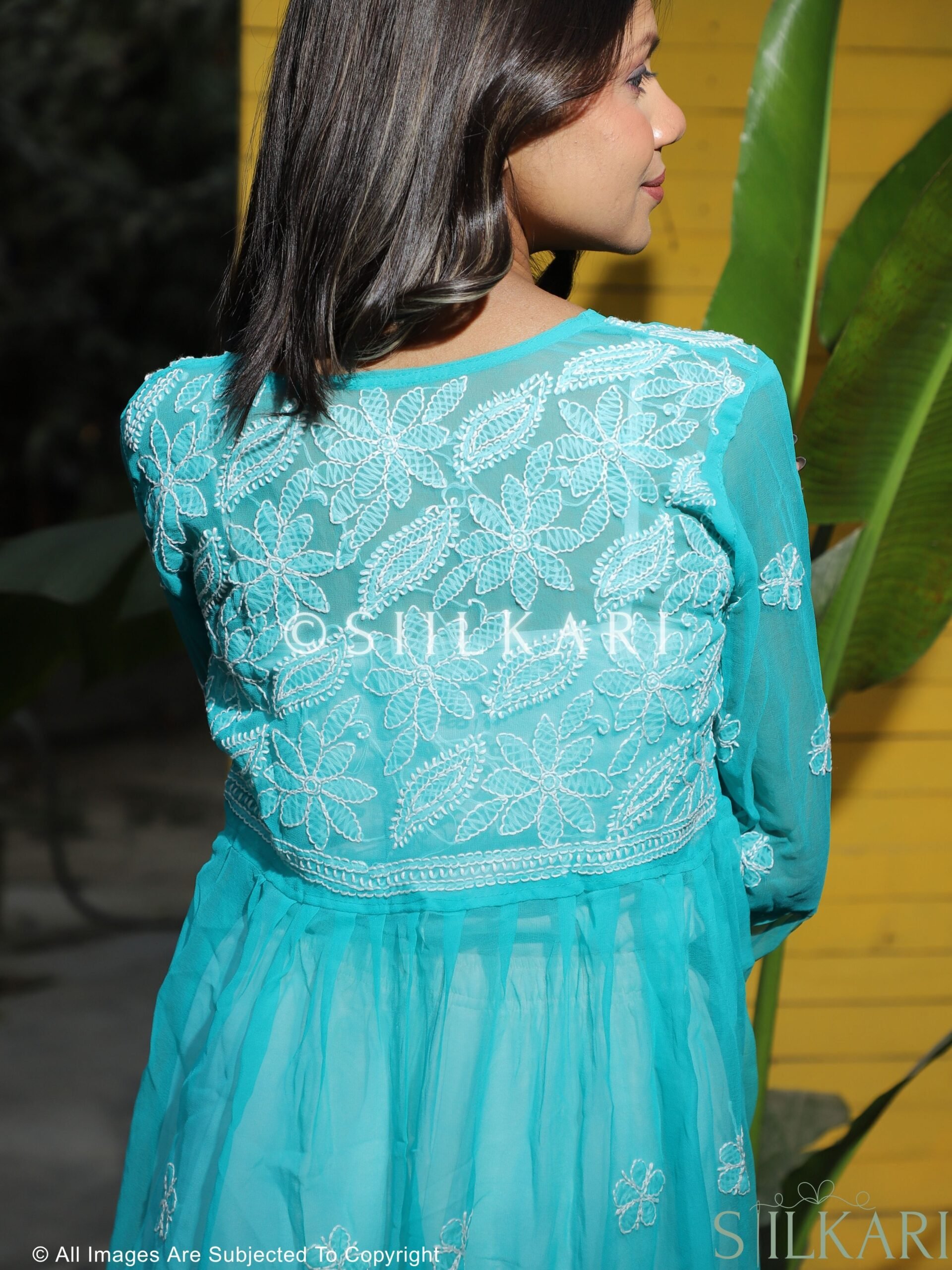 Be the first to review “Georgette Chikankari Short Frock Blue”