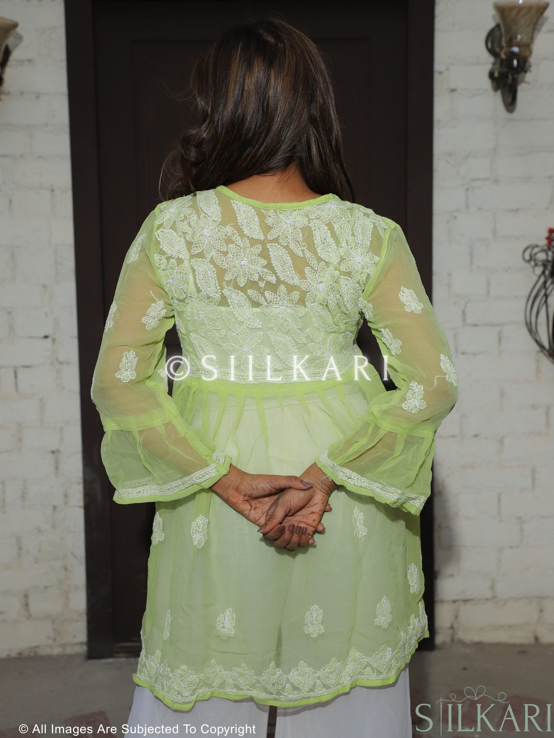 Be the first to review “Georgette Chikankari Short Frock Green”