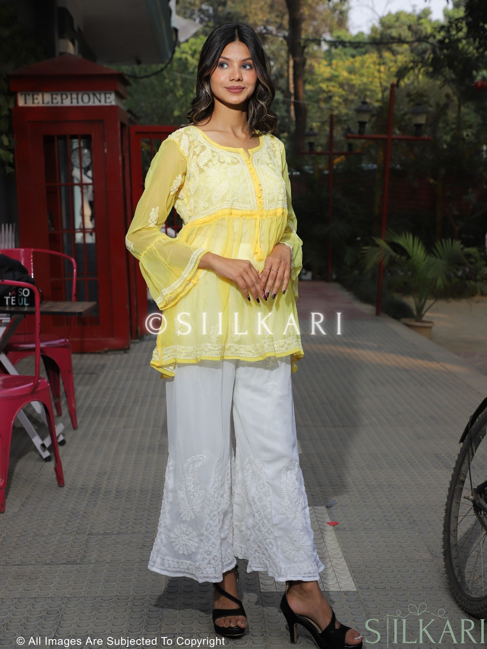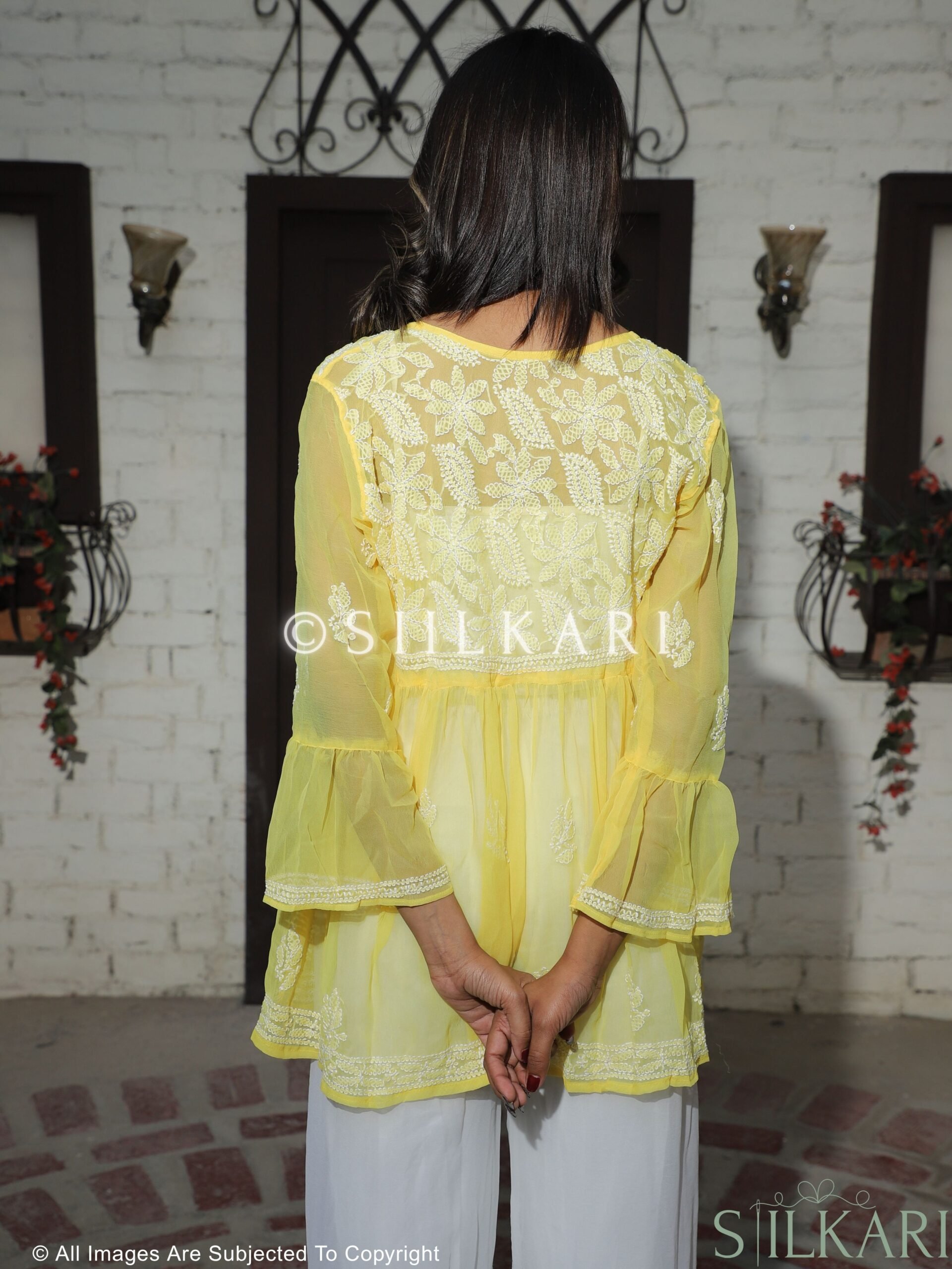 Be the first to review “Georgette Chikankari Short Frock Yellow”
