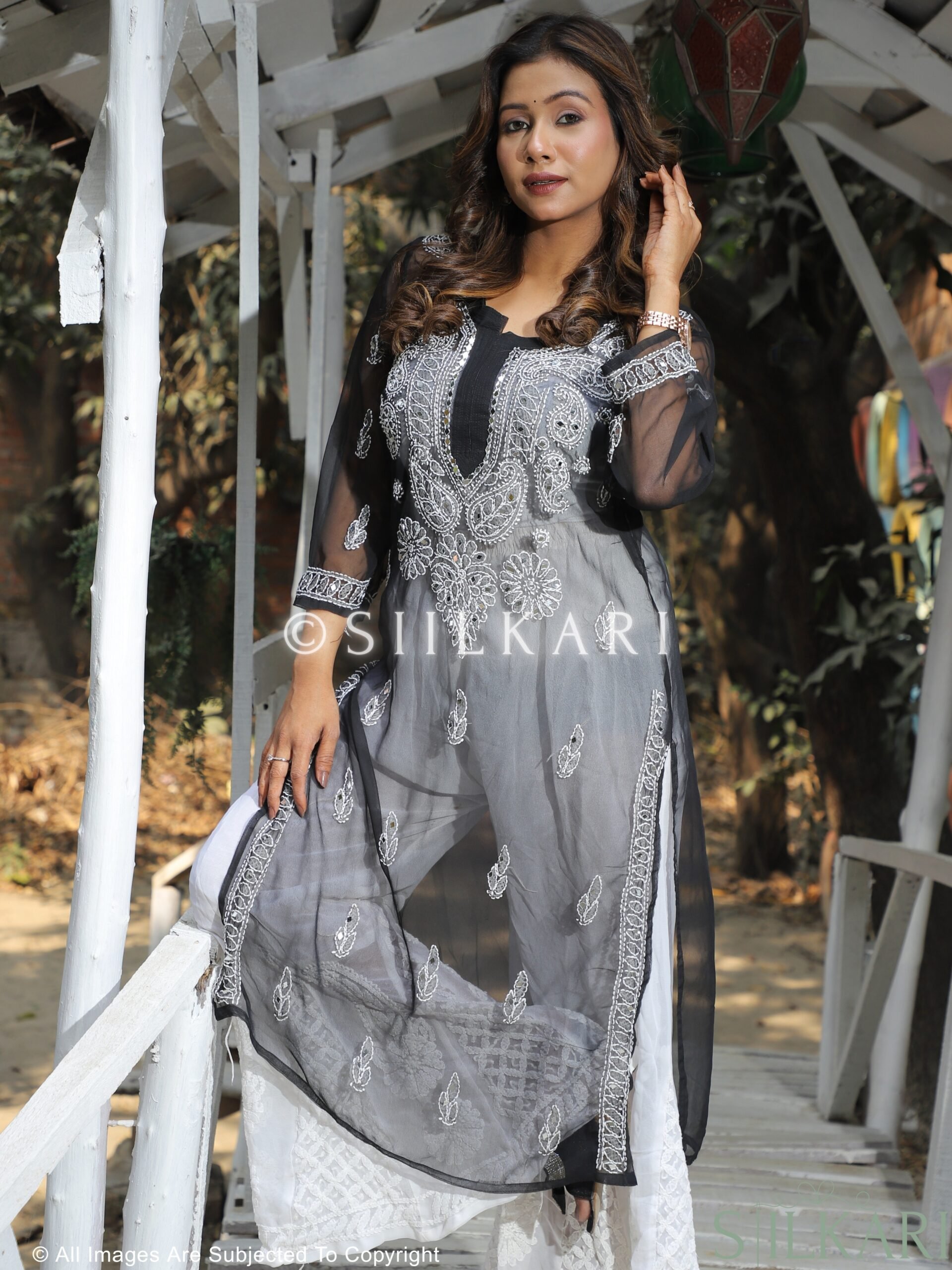 All-Over Hand Embroidery – Traditional Lucknowi chikankari design covering the entire kurti.
