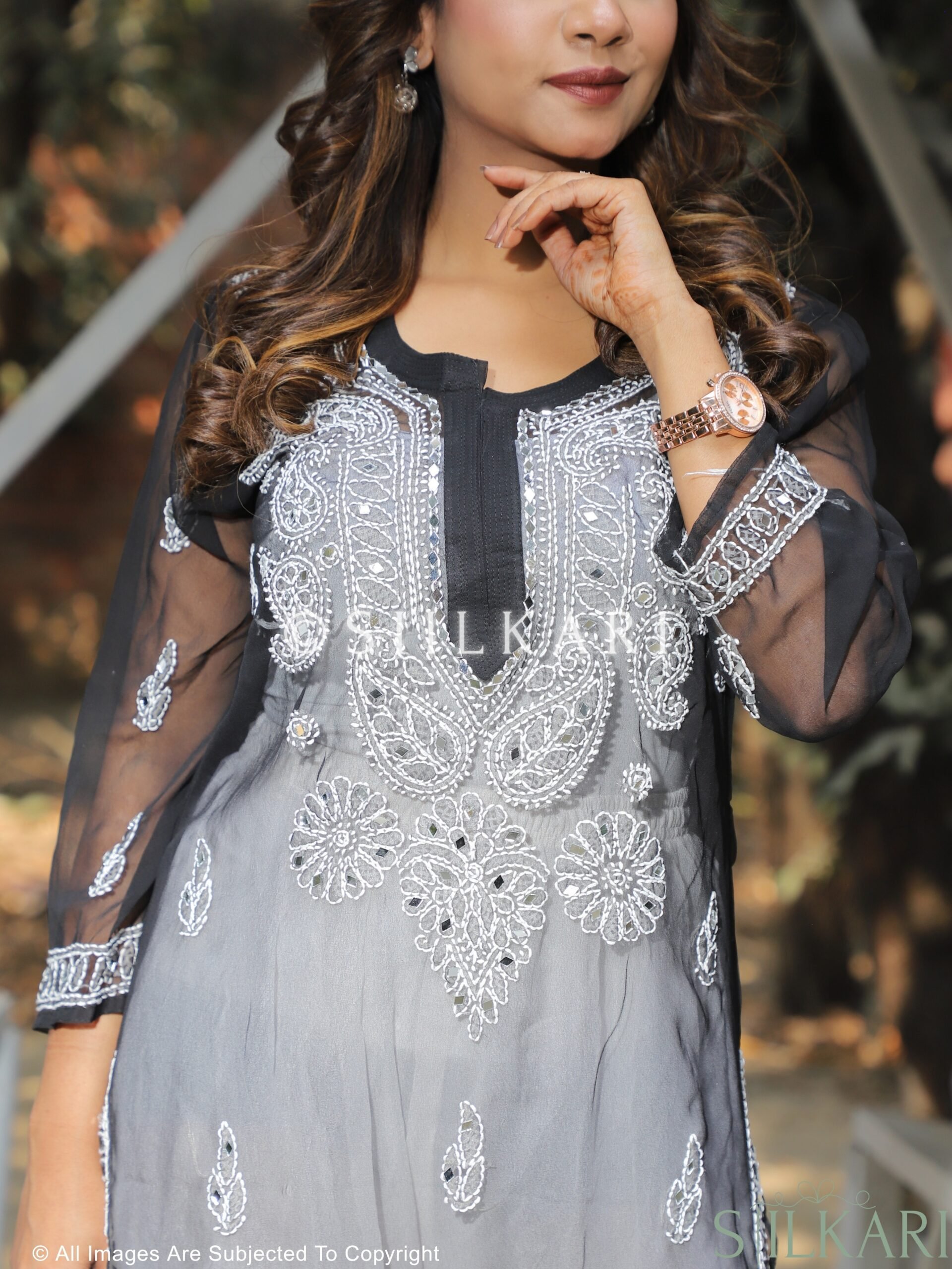 Faux Georgette Chikankari Kurti – Lightweight, flowy, and comfortable for all-day wear.