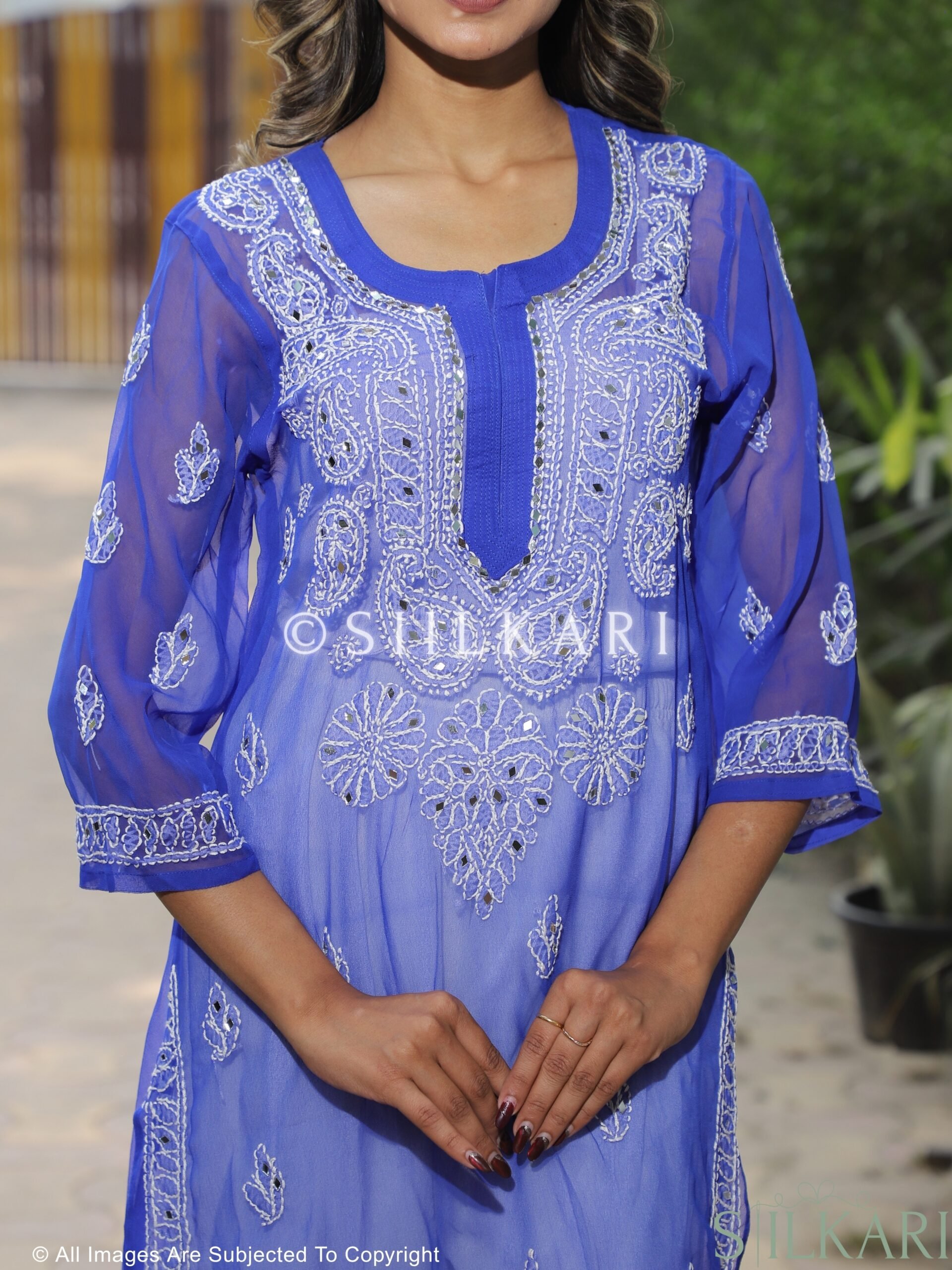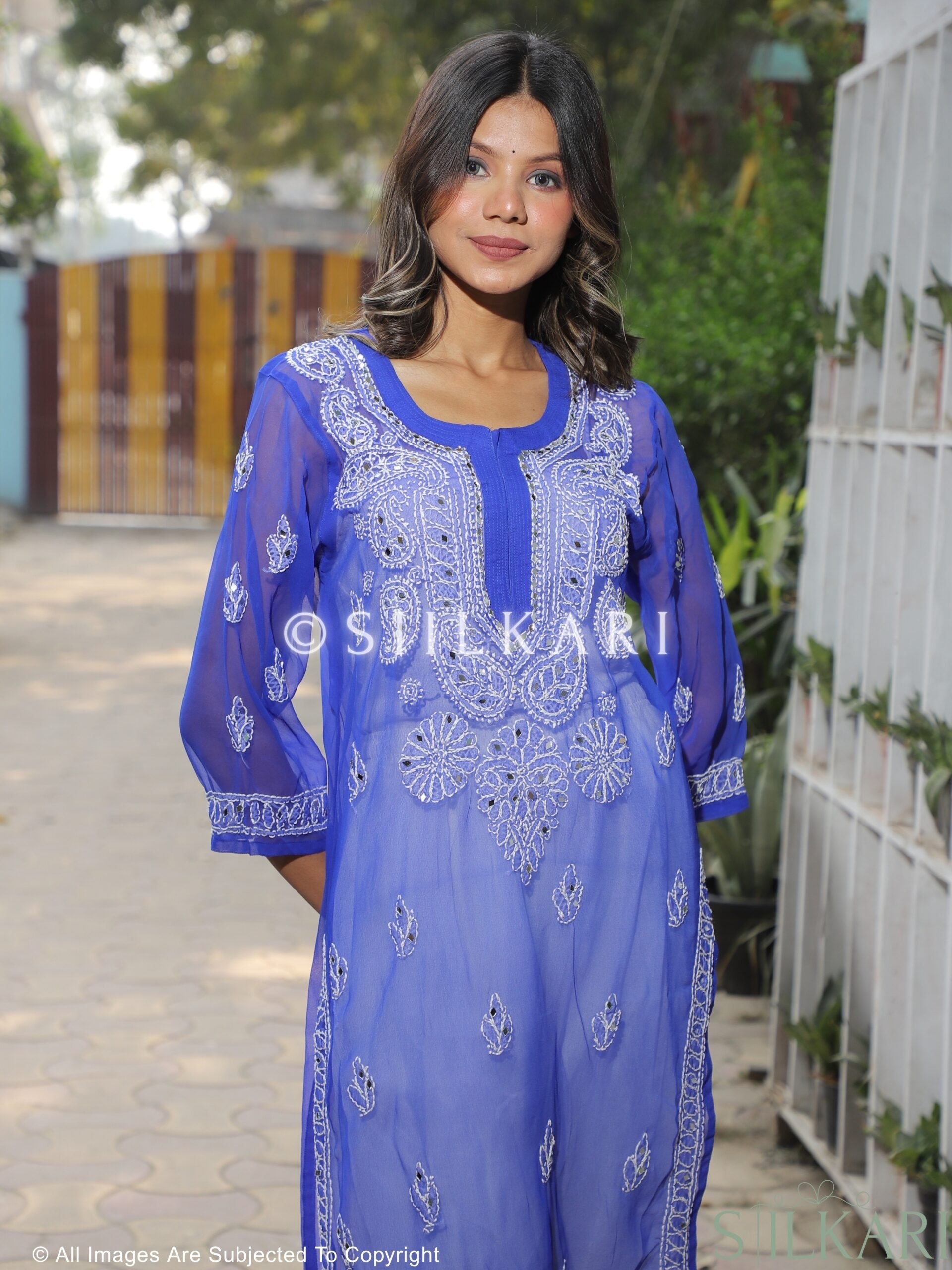 Georgette Chikankari Slim Fit Booti Work Kurti Blue