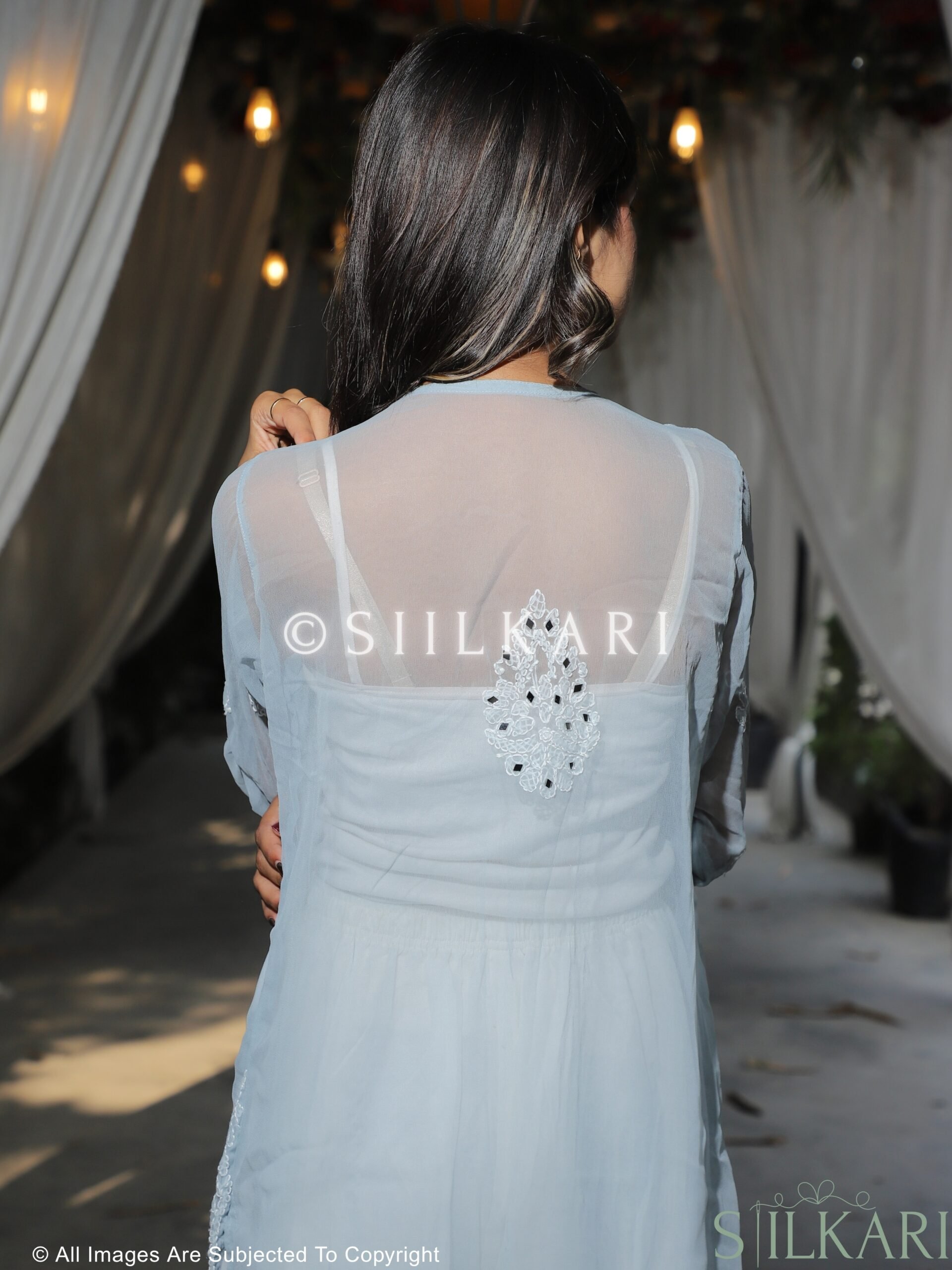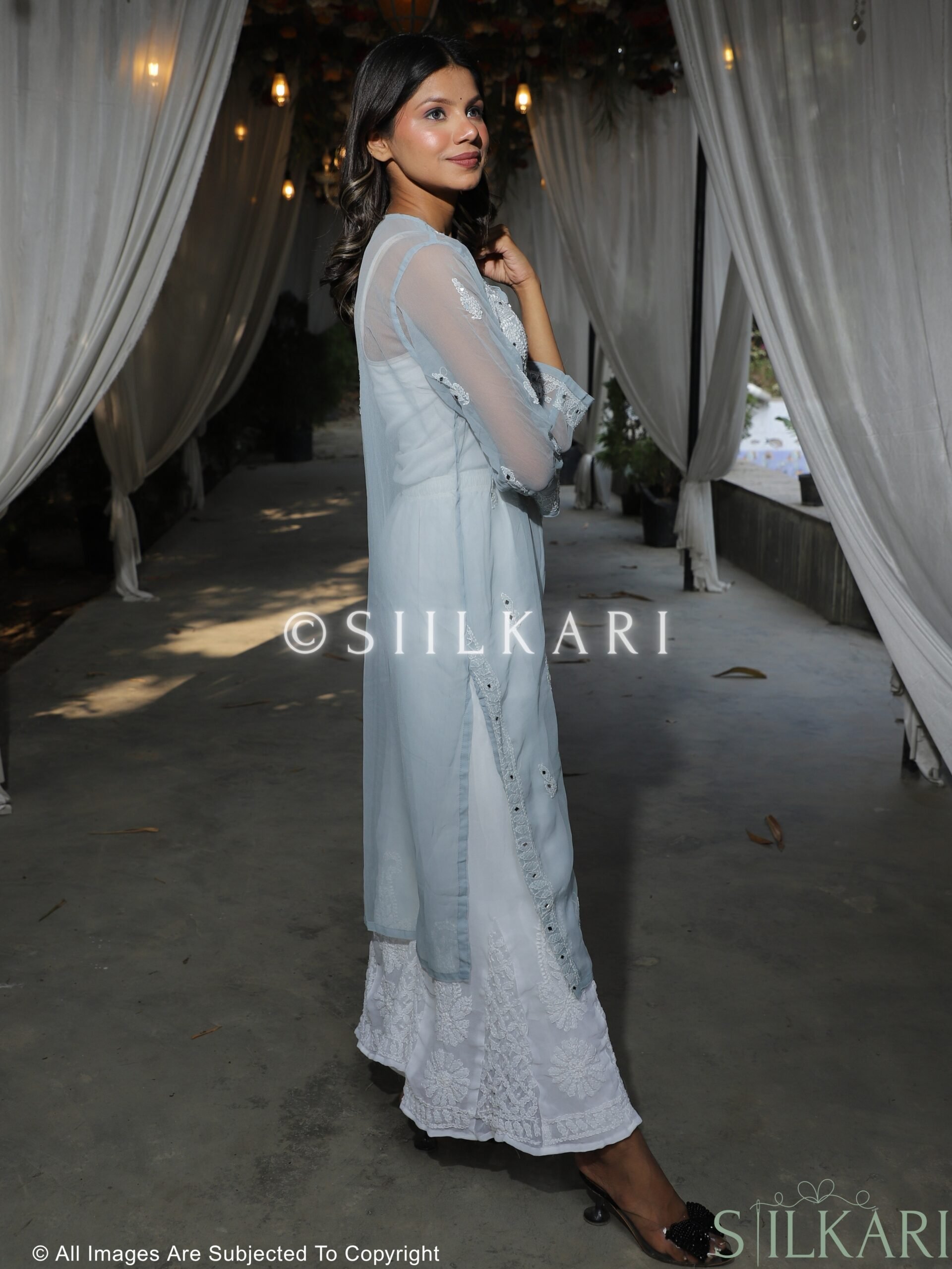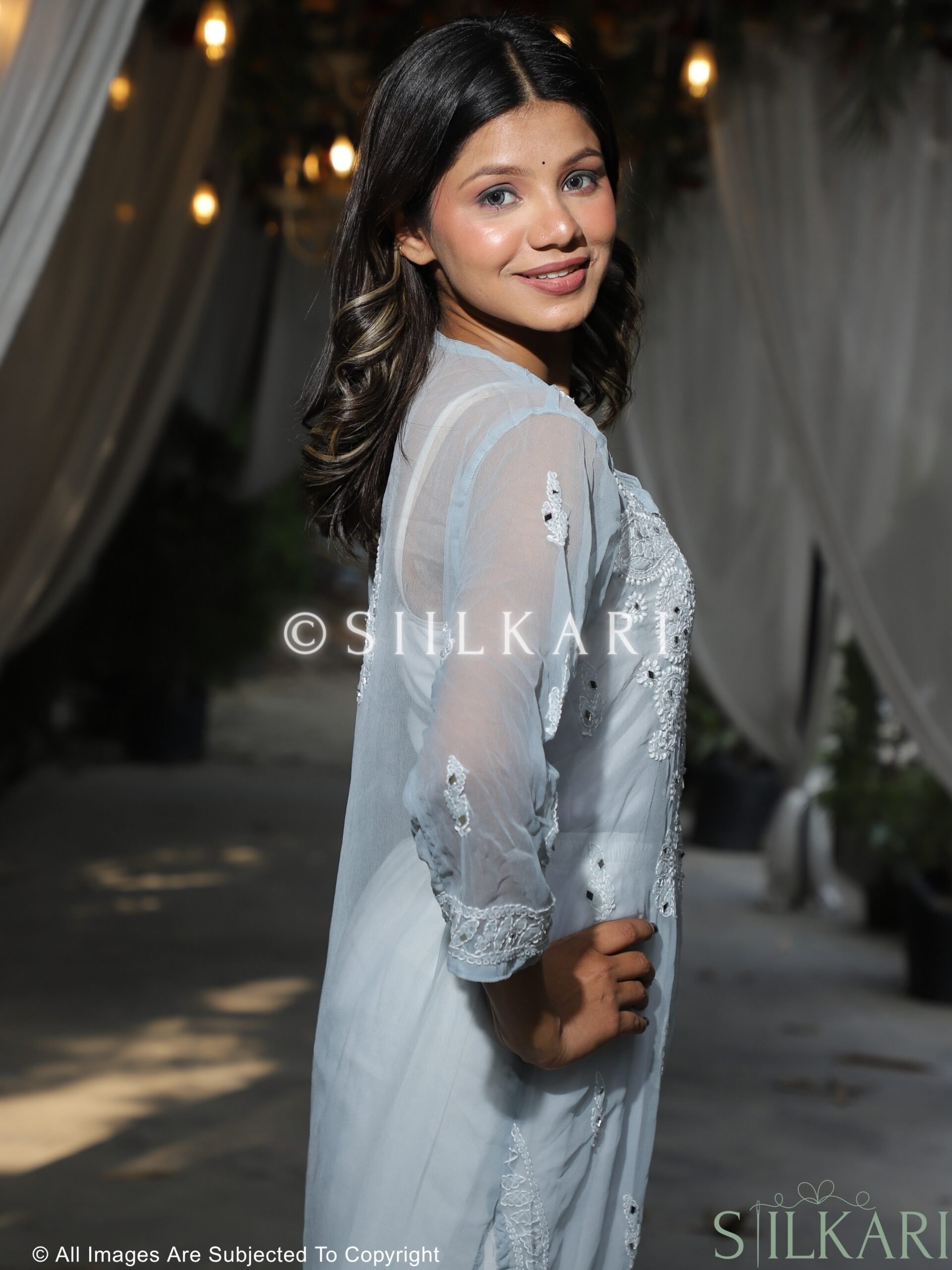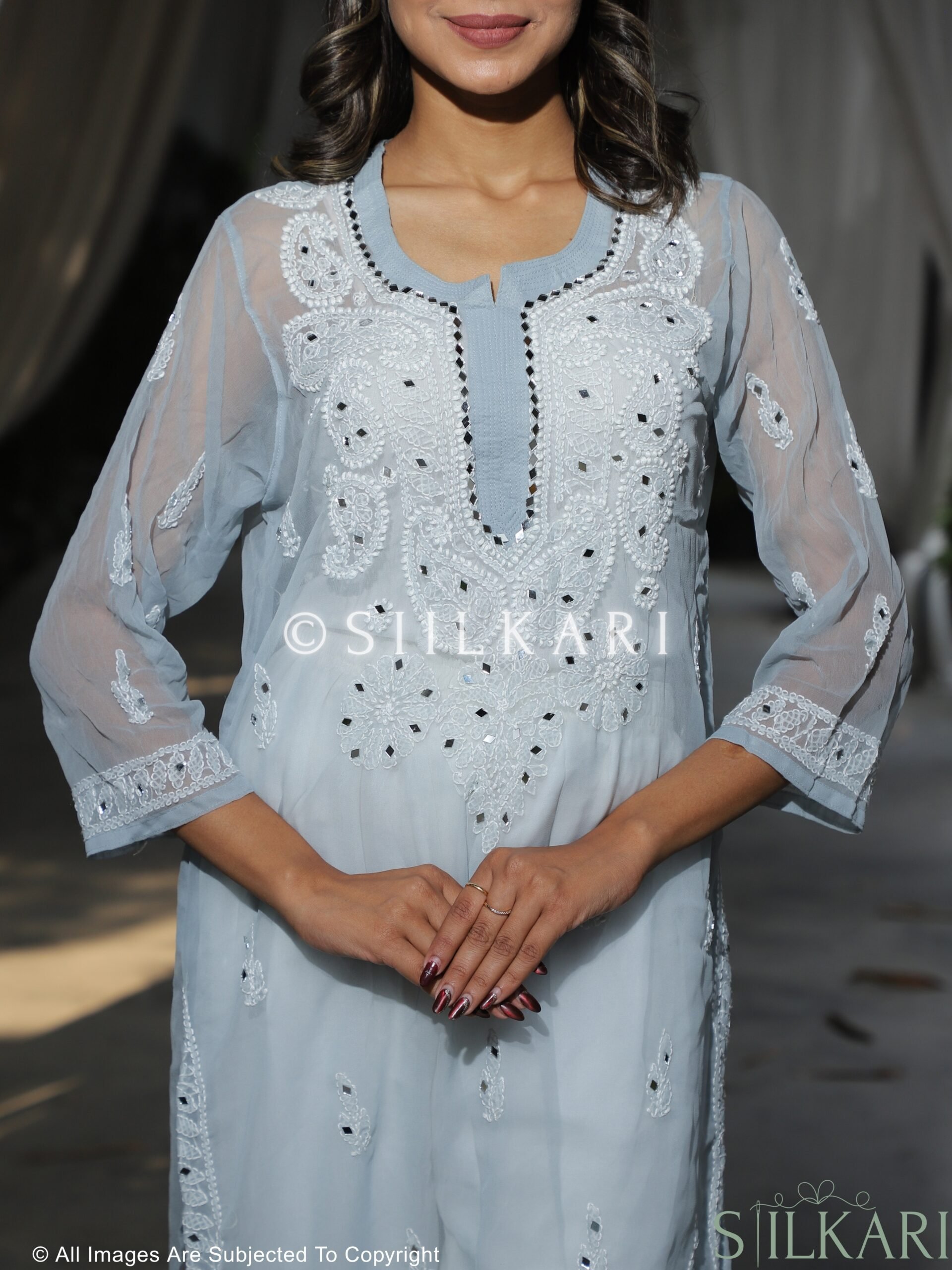 Georgette Chikankari Slim Fit Booti Work Kurti Grey