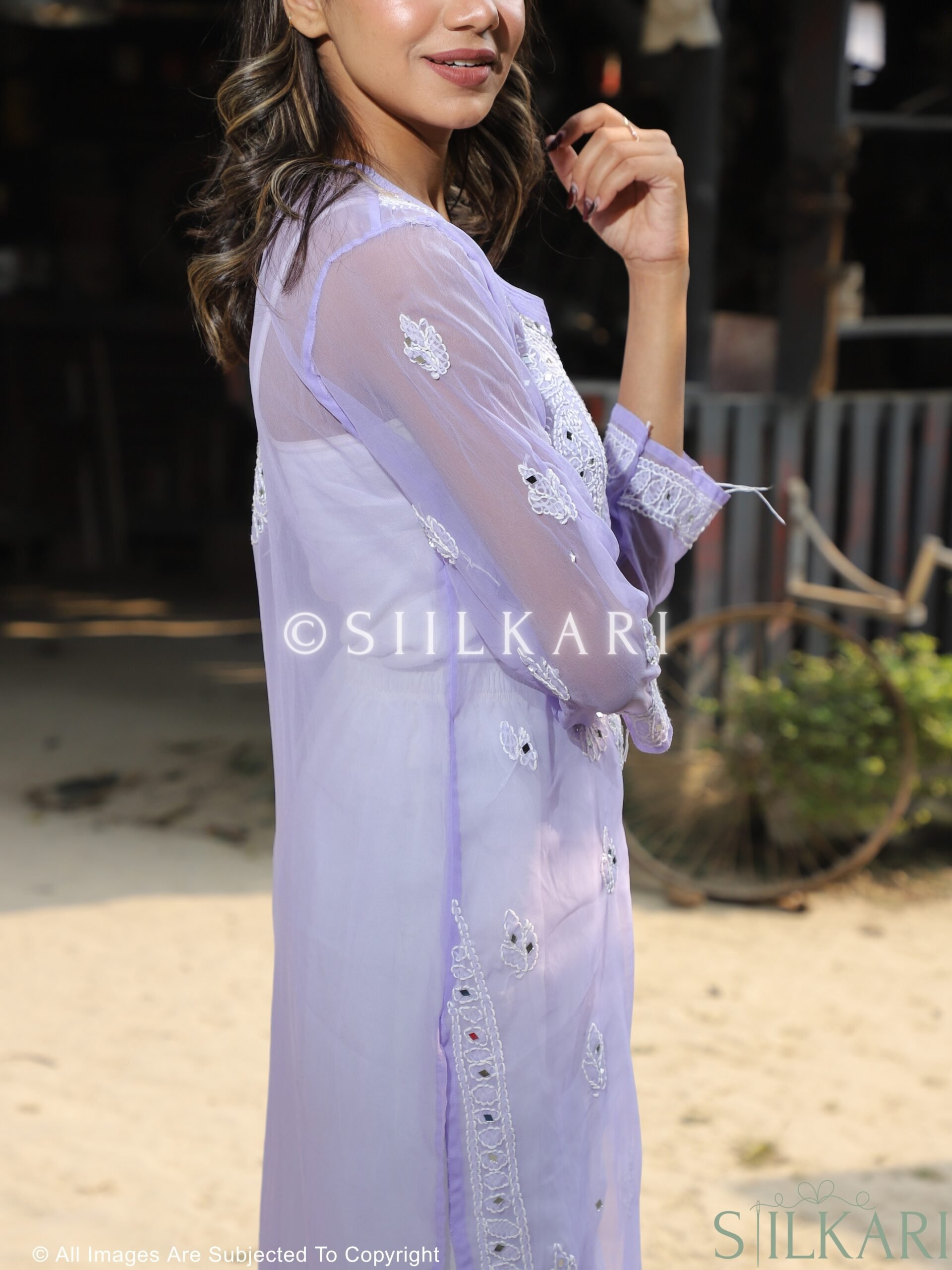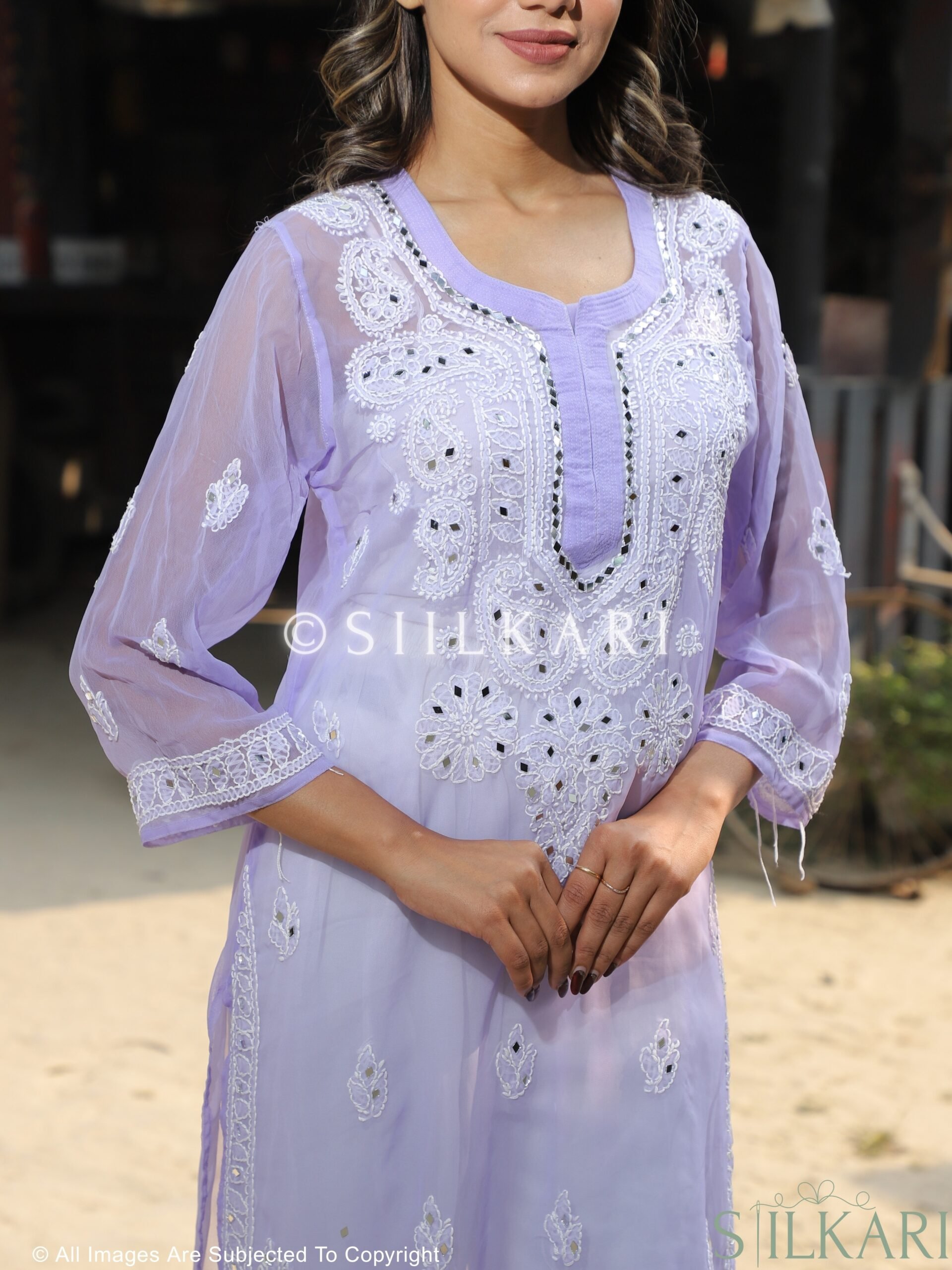 • All-Over Hand Embroidery – Traditional Lucknowi chikankari design covering the entire kurti.