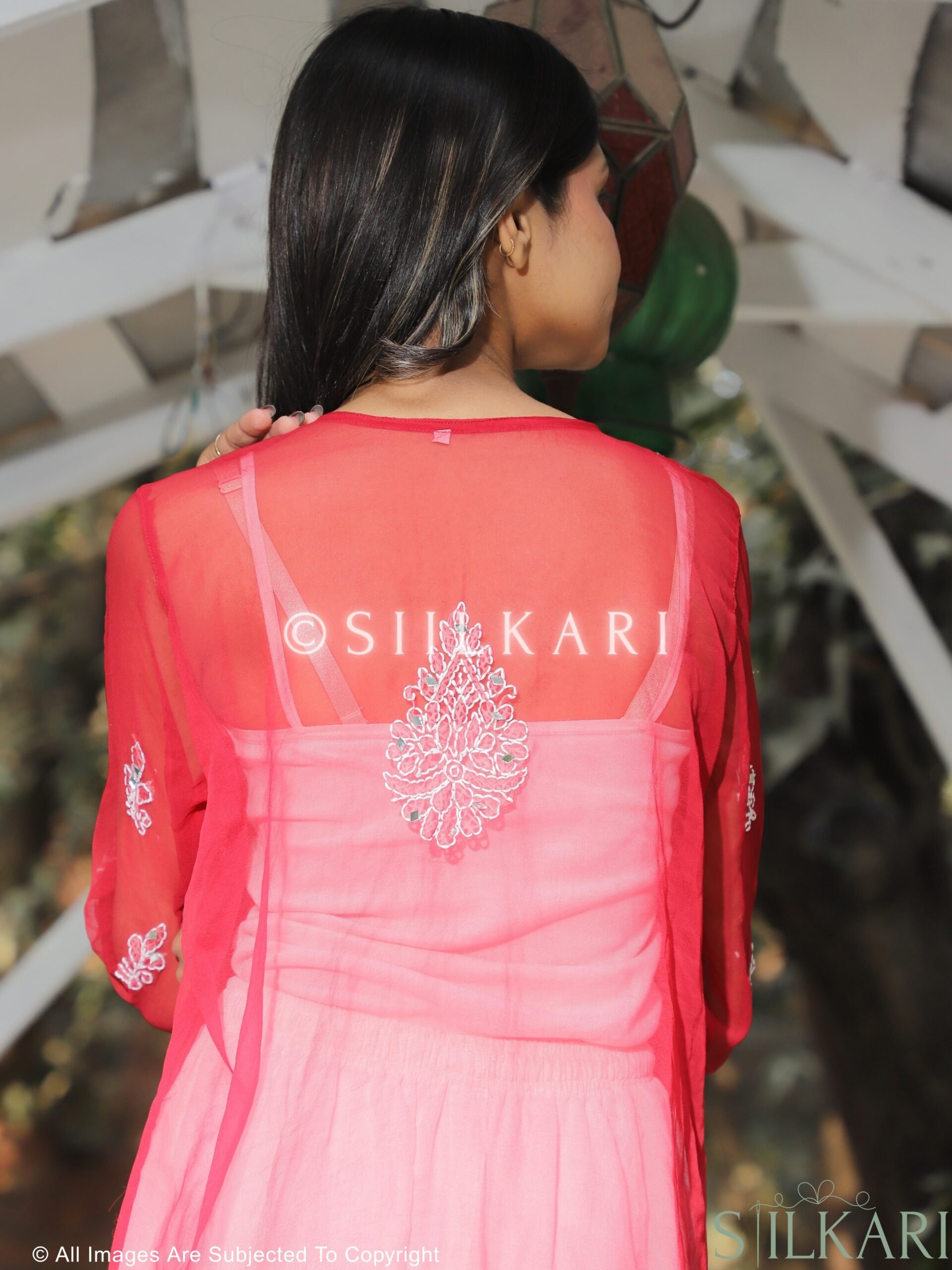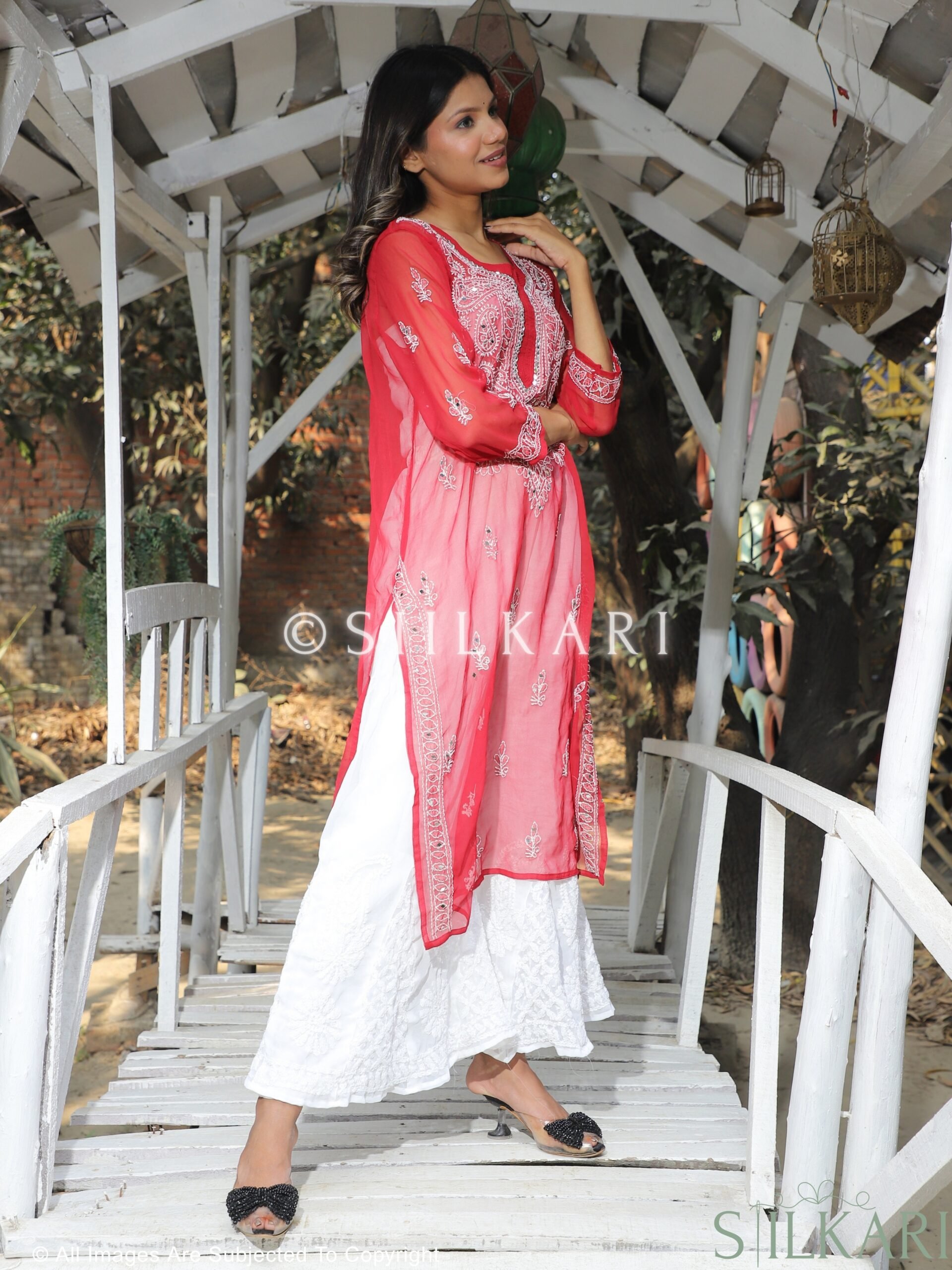 All-Over Hand Embroidery – Traditional Lucknowi chikankari design covering the entire kurti.