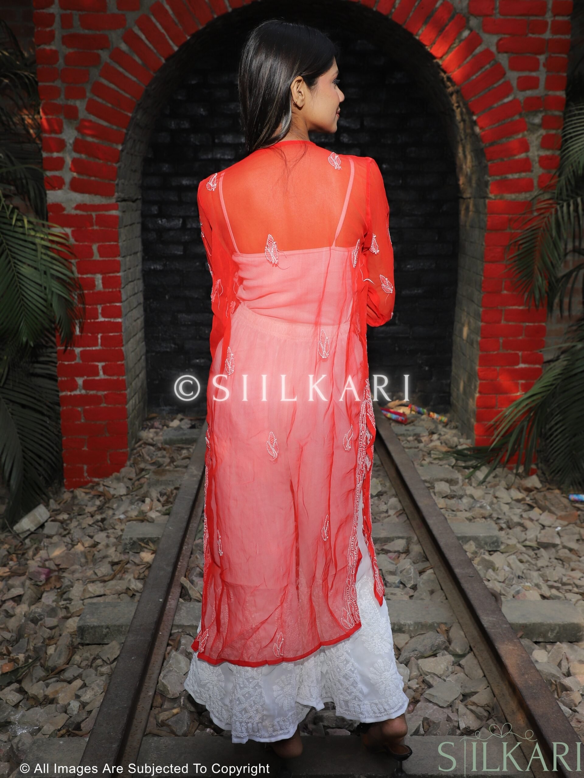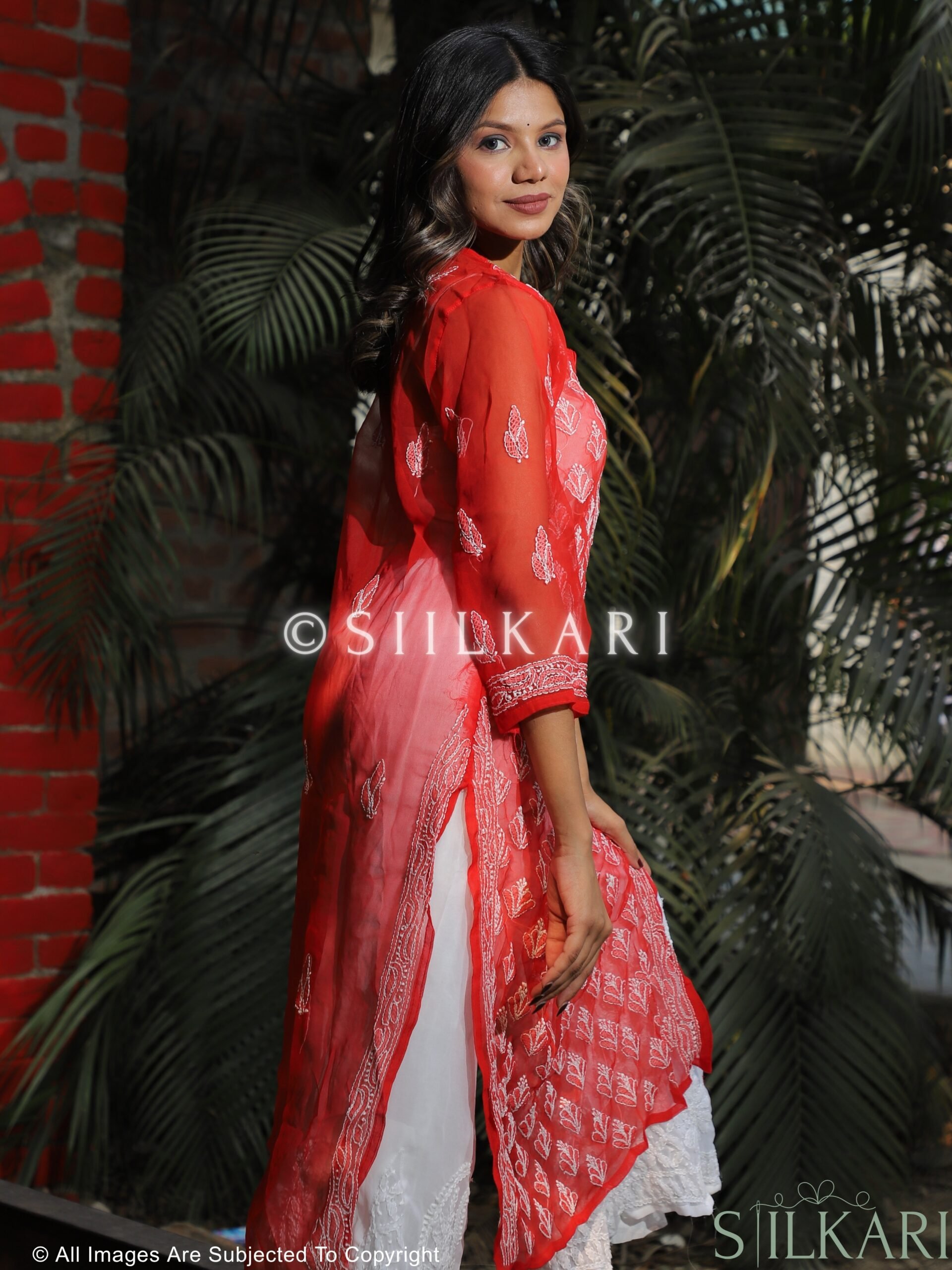 Be the first to review “Georgette Chikankari Whole Booti Work Kurti Red”