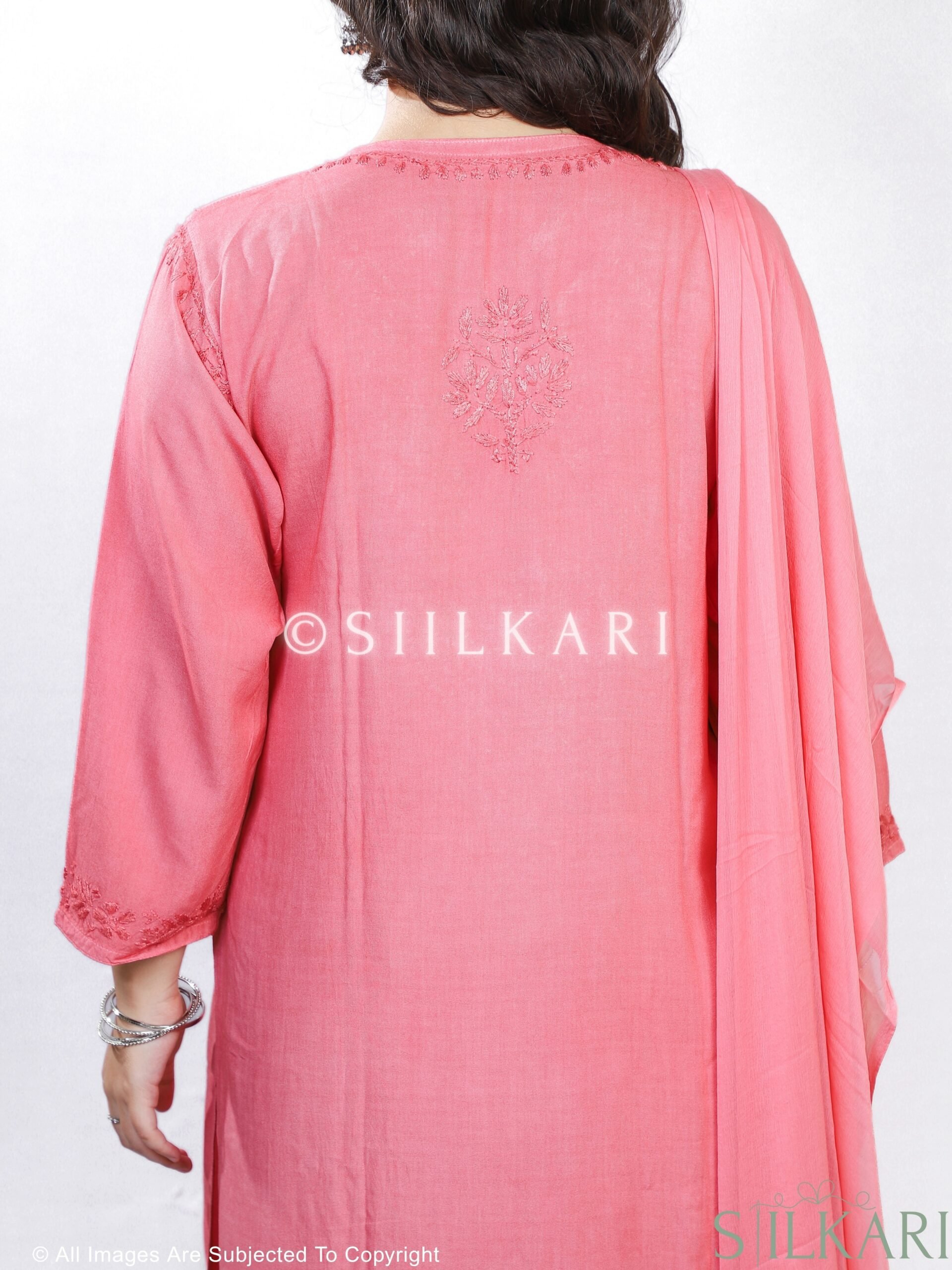 - Embroidery: Pure hand Chikankari work on both kurti and palazzo.
